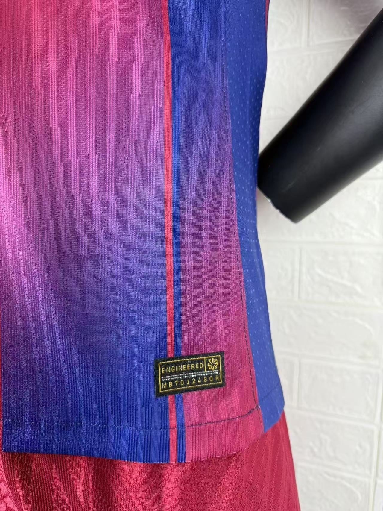 The 2025–26 home kit returns to Barça’s traditional red and deep blue vertical stripes, but with a unique gradient effect that softly blends both colors toward the center. This modern detail gives the jersey a dynamic and elegant appearance, capturing the motion and energy of Barça’s attacking style. 🔵🔴💫