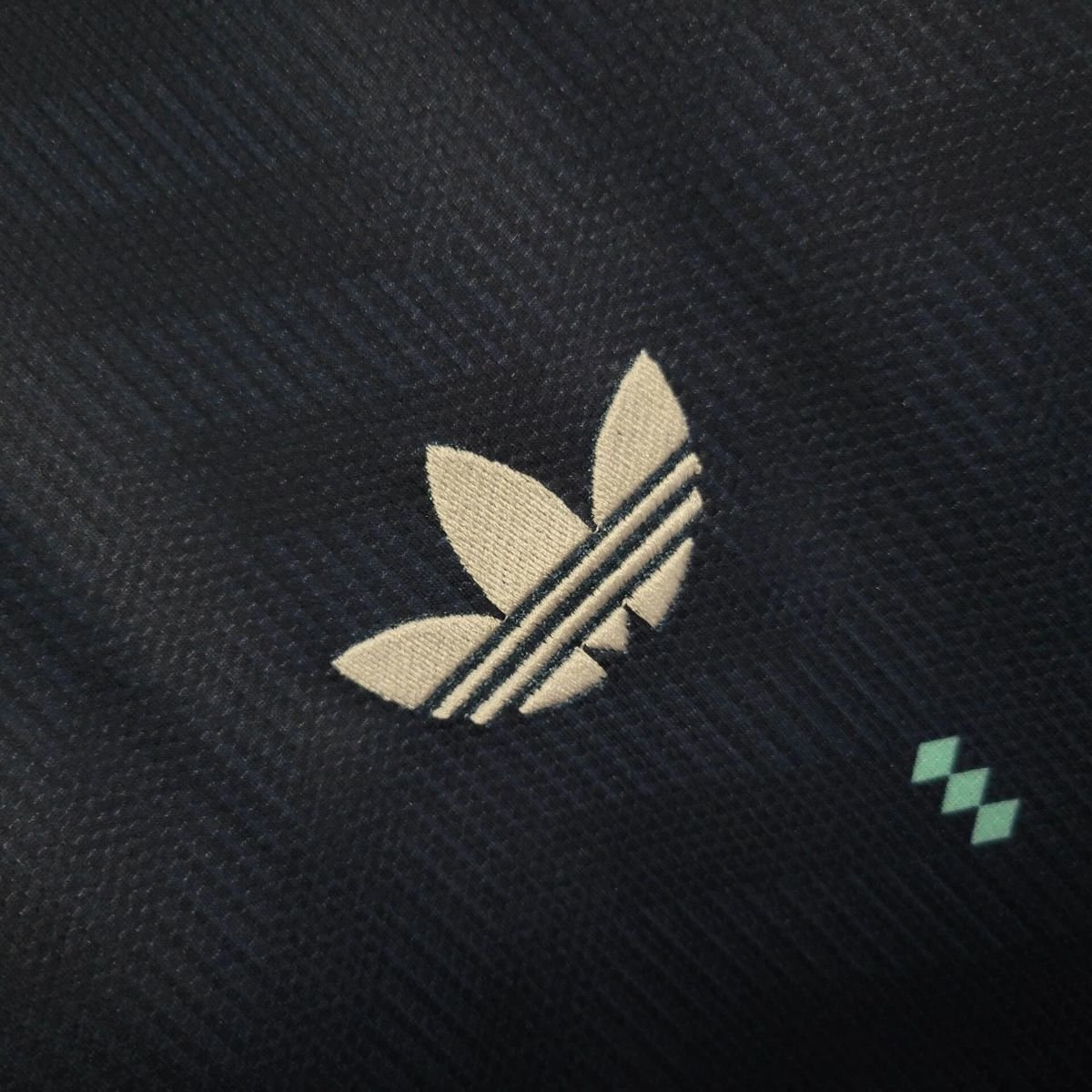 The 2026 away jersey showcases a deep navy base combined with clean white logos and refreshing mint green accents. A striking zig-zag pattern adds energy and movement to the design, while the iconic Adidas Trefoil logo returns, blending classic heritage with modern aesthetics. β‘πΏ